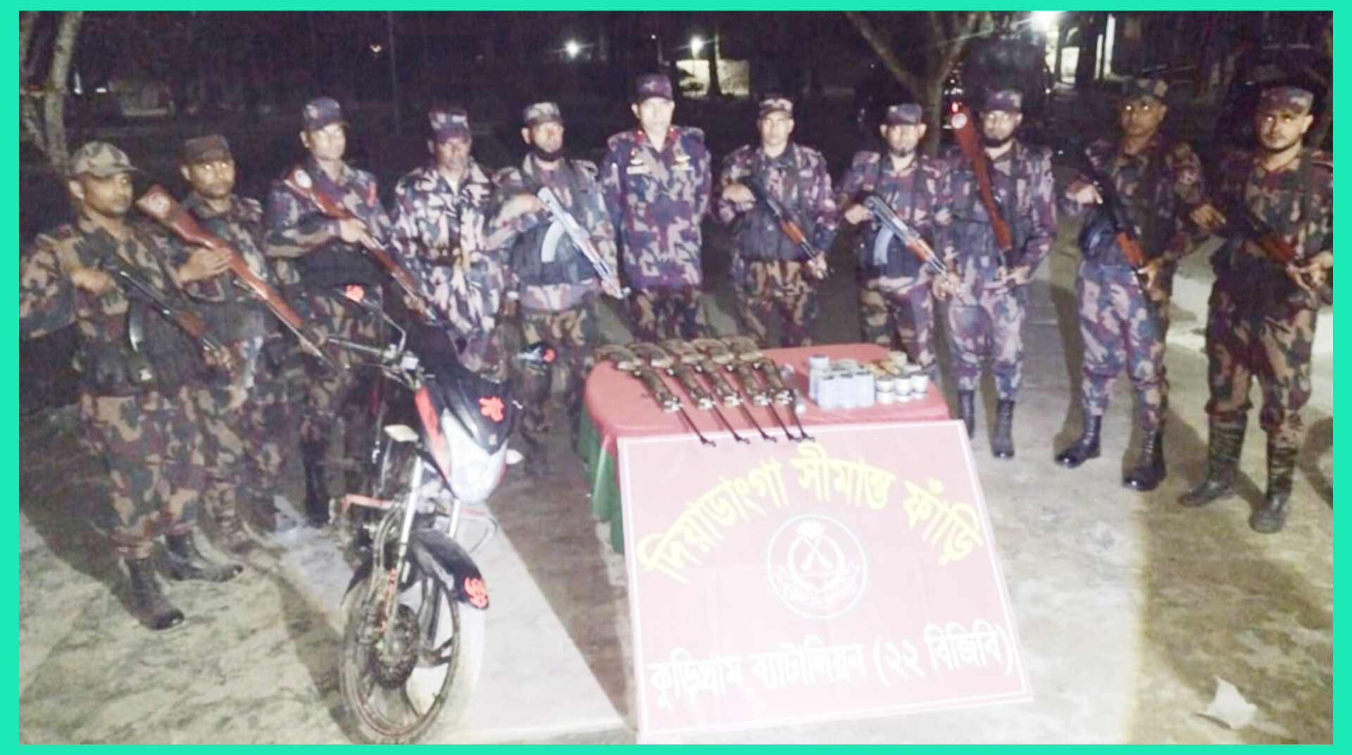 কুড়িগ্রামের ভুরুঙ্গামারী সীমান্তে বিজিবি’র অভিযানে বিপুল পরিমাণ অস্ত্র ও গুলি উদ্ধার