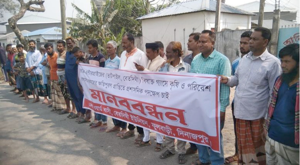 ফুলবাড়ীতে মুরগির খামারের বিষাক্ত গ্যাসে কৃষি ও পরিবেশ বিপর্যস্ত : প্রতিবাদে মানববন্ধন