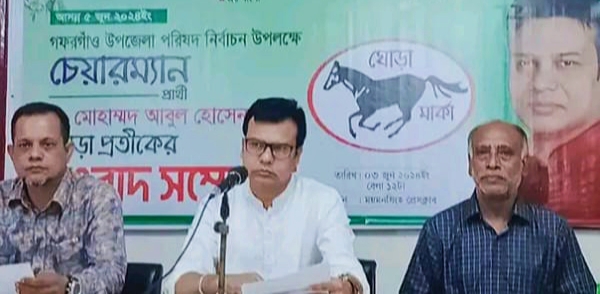 গফরগাঁওয়ে অবৈধ অস্ত্র উদ্ধারের দাবীতে চেয়ারম্যান প্রার্থীর সংবাদ সম্মেলন
