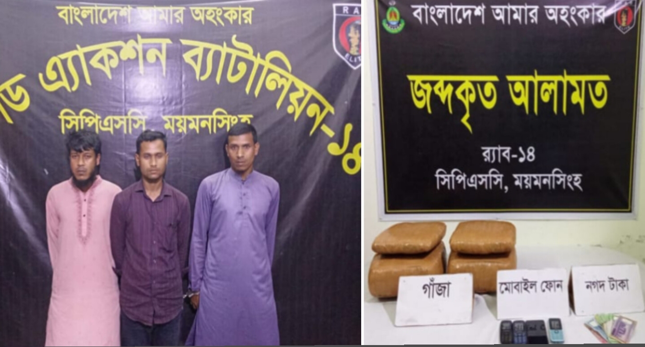 ময়মনসিংহে র্যাবের অভিযানে ১৬ কেজি গাঁজাসহ তিন মাদক কারবারি আটক