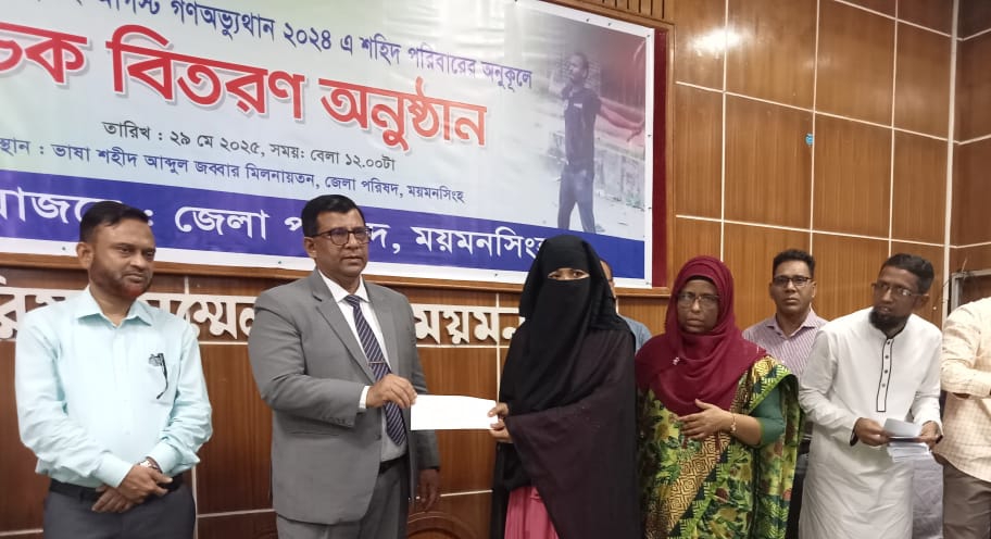 ময়মনসিংহে গণঅভ্যুত্থানে শহিদ পরিবারের মাঝে ৭৬ লাখ টাকার চেক বিতরণ