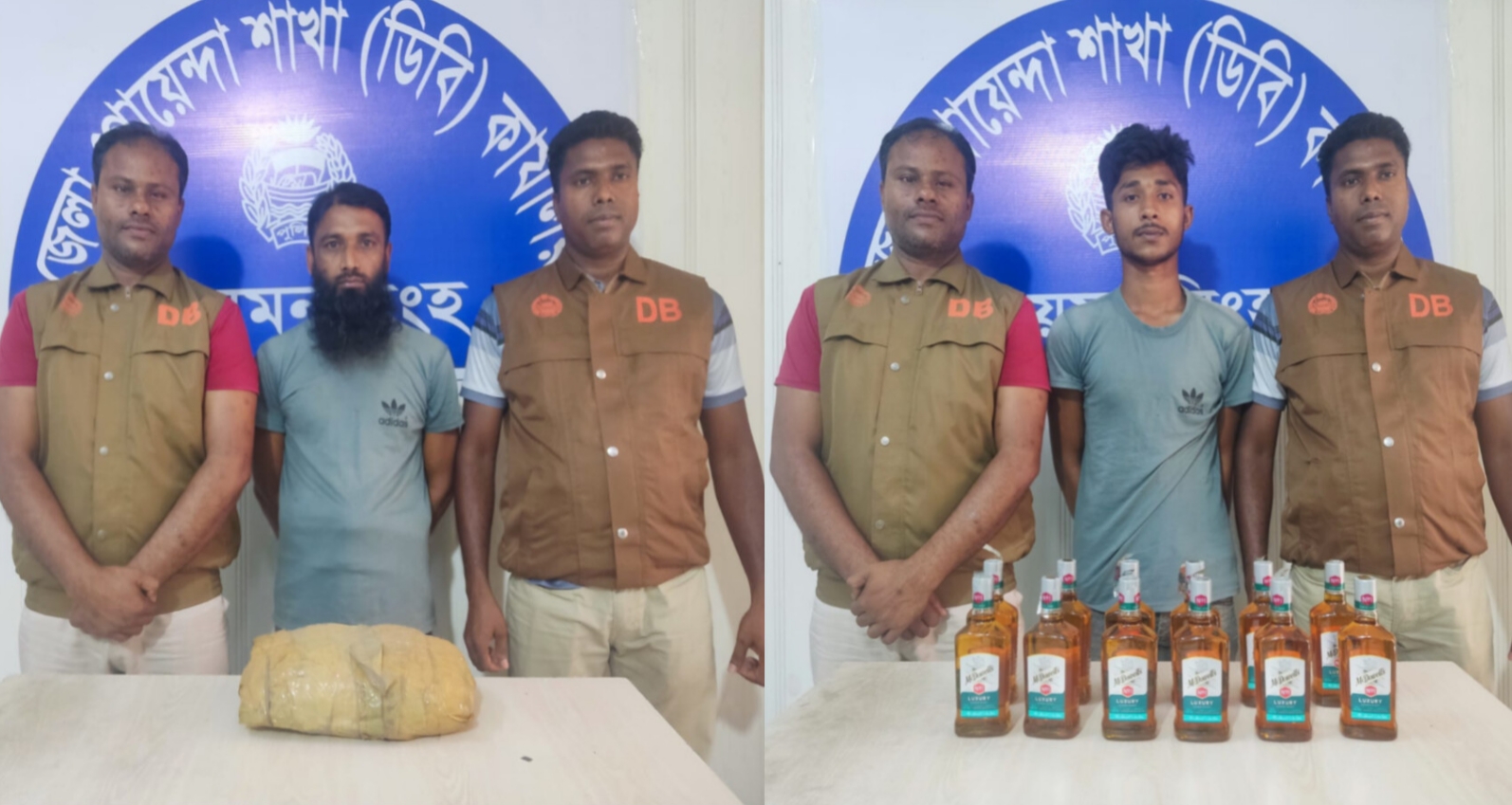 ময়মনসিংহে ডিবি পুলিশের অভিযানে ২ কেজি গাঁজা ও ১২ বোতল ভারতীয় মদ উদ্ধার : গ্রেপ্তার-২