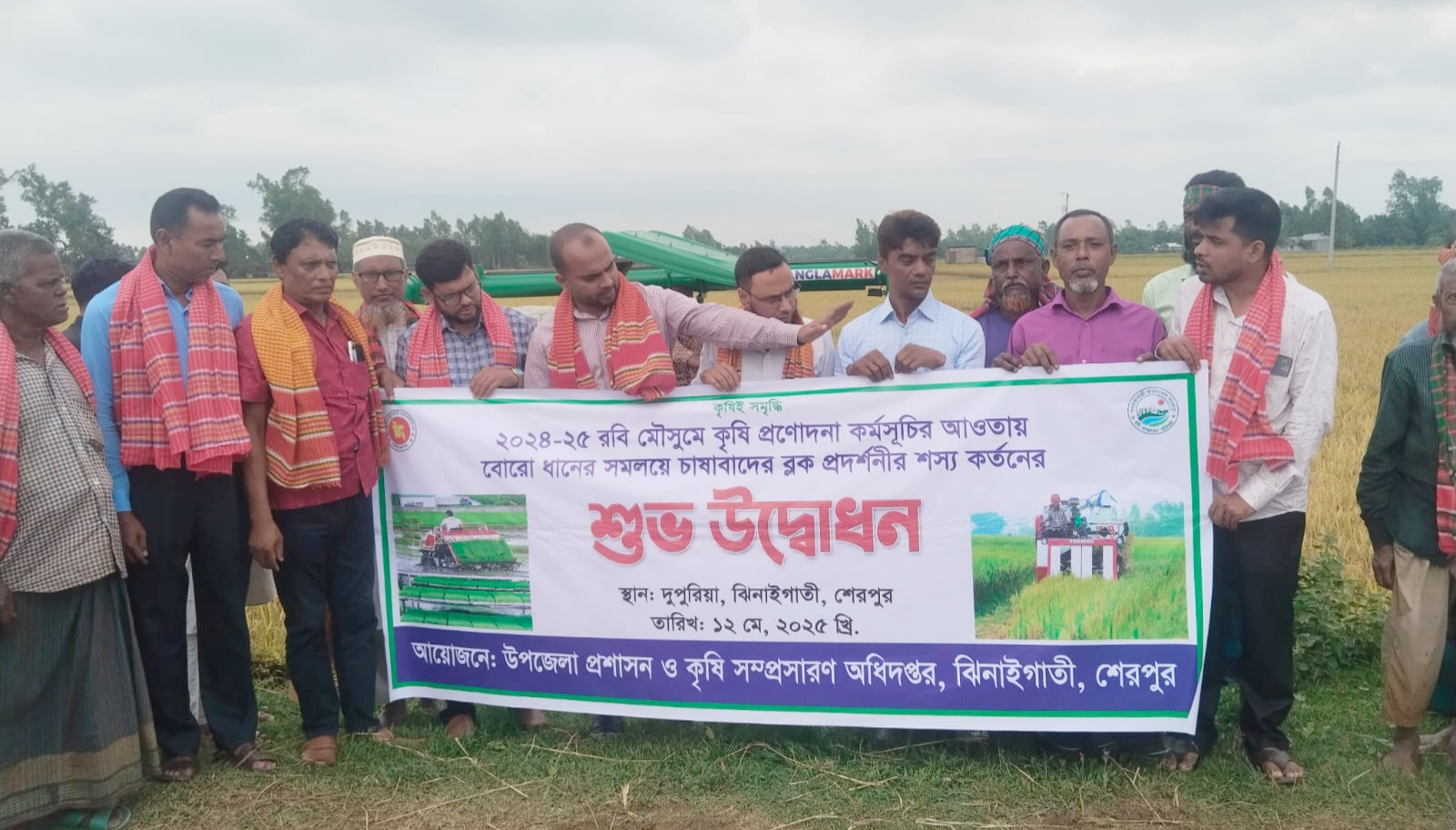 শেরপুরের ঝিনাইগাতীতে সমলয় পদ্ধতিতে বোর ধান কর্তনের উদ্বোধন