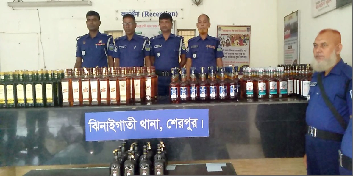 ঝিনাইগাতী পুলিশের অভিযানে ১৩৮৫ বোতল অবৈধ ভারতীয় মদ উদ্বার