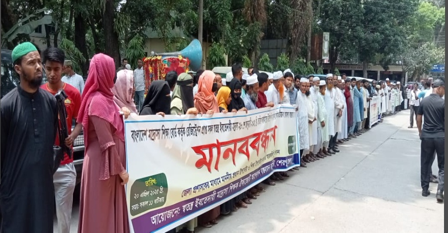 শেরপুরে ৬ দফা দাবি বাস্তবায়নে স্বতন্ত্র ইবতেদায়ী মাদ্রাসা শিক্ষক ঐক্যজোটের মানববন্ধন ও স্মারকলিপি প্রদান