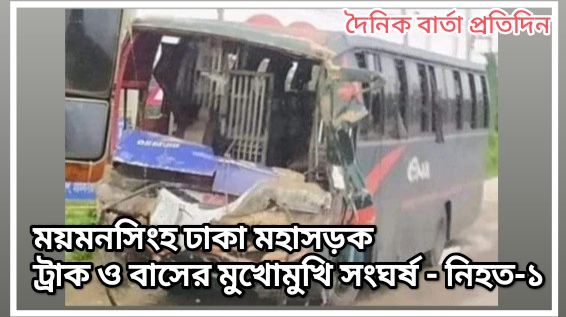 ময়মনসিংহ ঢাকা মহাসড়কে বাসের সাথে ট্রাকের মুখোমুখি সংঘর্ষ : নিহত-১
