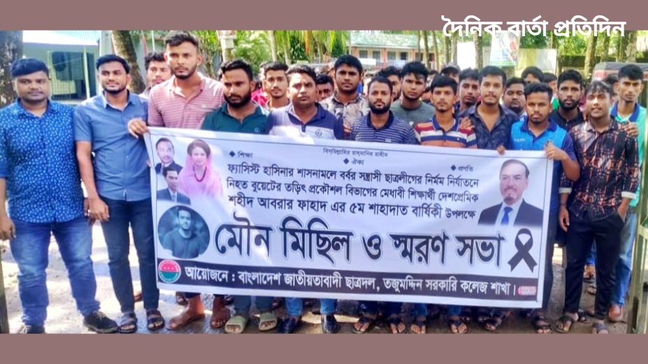আবরার হত্যার ৫ম বর্ষে তজুমদ্দিনে ছাত্রদলের মৌন মিছিল ও স্মরণসভা