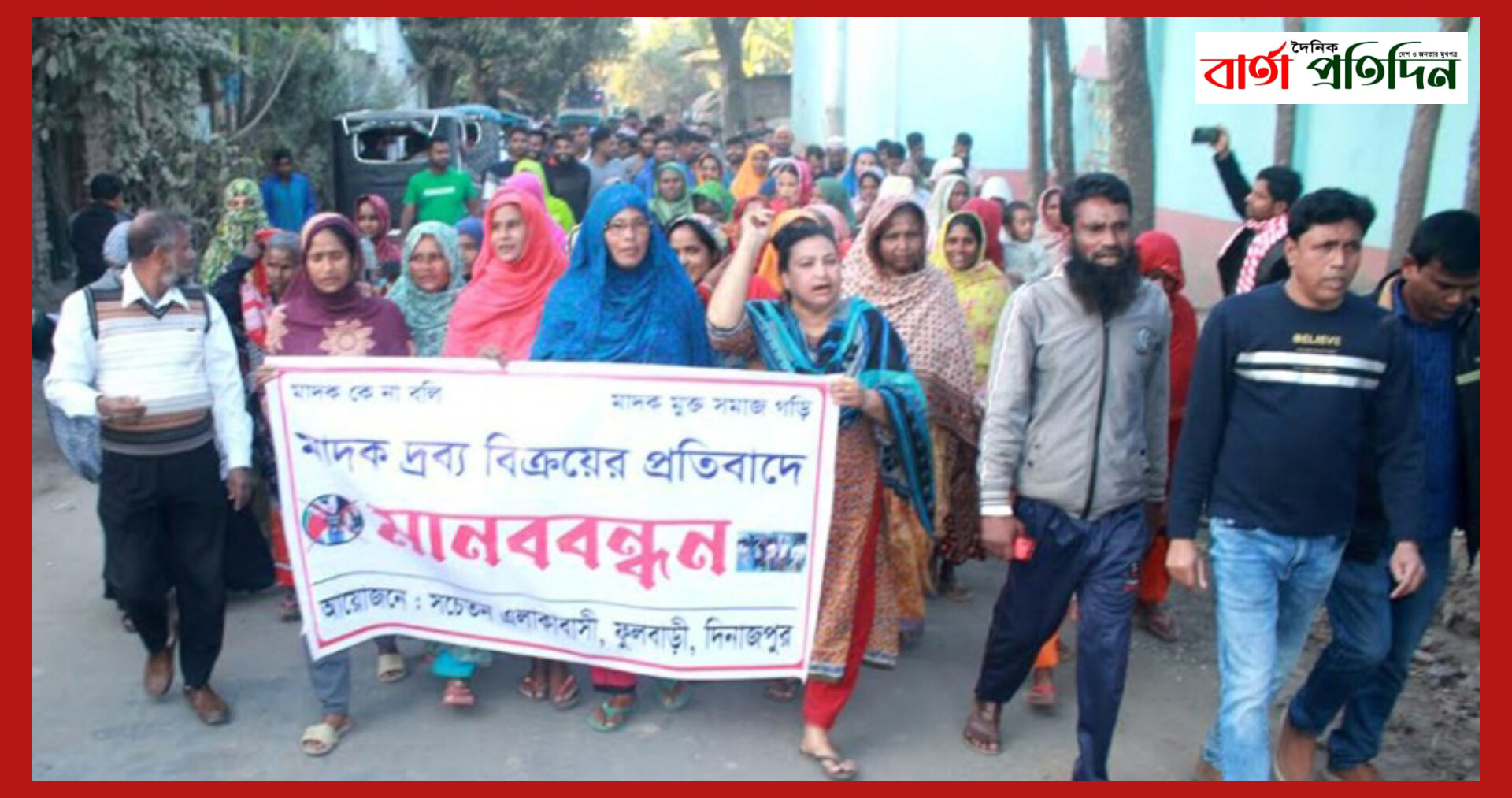 ফুলবাড়ীতে মাদক ব্যবসায়ীদের শাস্তির দাবিতে মানববন্ধন ও বিক্ষোভ মিছিল