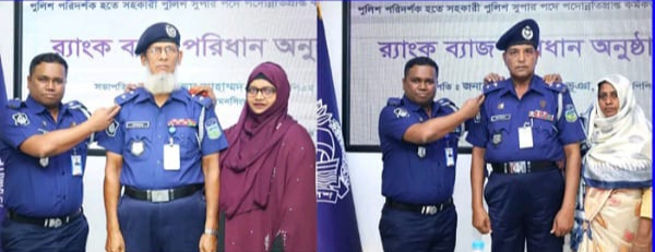 সহকারী পুলিশ সুপার পদে পদোন্নতিপ্রাপ্ত ২ কর্মকর্তাকে র্যাঙ্ক ব্যাজ পরিয়ে দেন পুলিশ সুপার