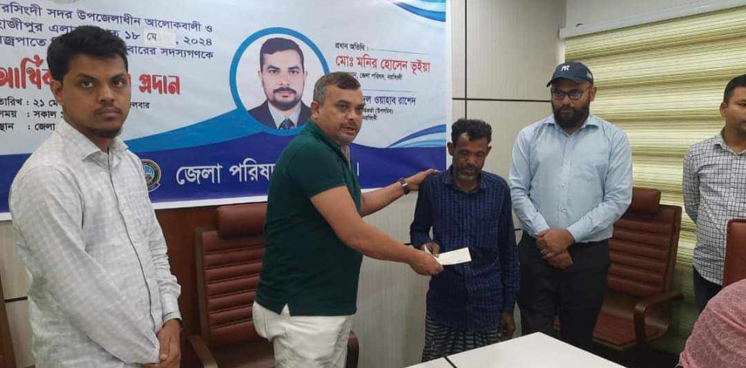 নরসিংদীতে ব্রজপাতে নিহত পরিবারের মাঝে চেক বিতরণ