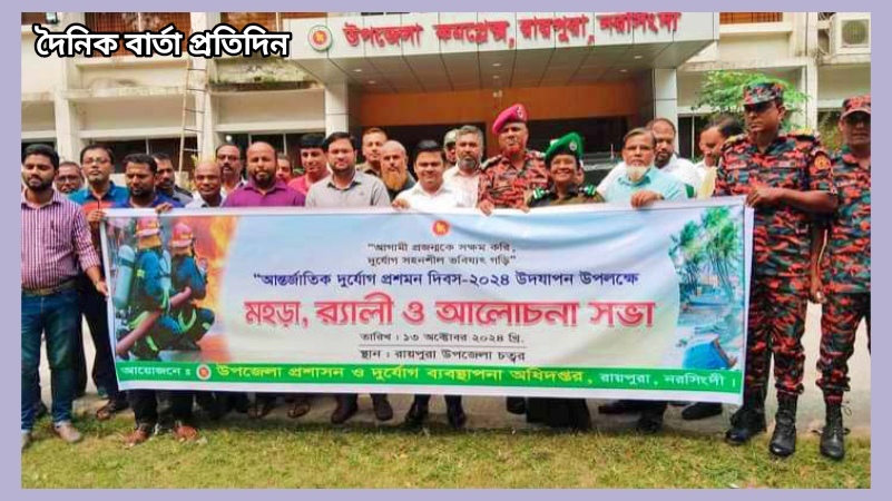 আন্তর্জাতিক দুর্যোগ প্রশমন দিবস উপলক্ষে রায়পুরায় র্যালি ও আলোচনা সভা অনুষ্ঠিত
